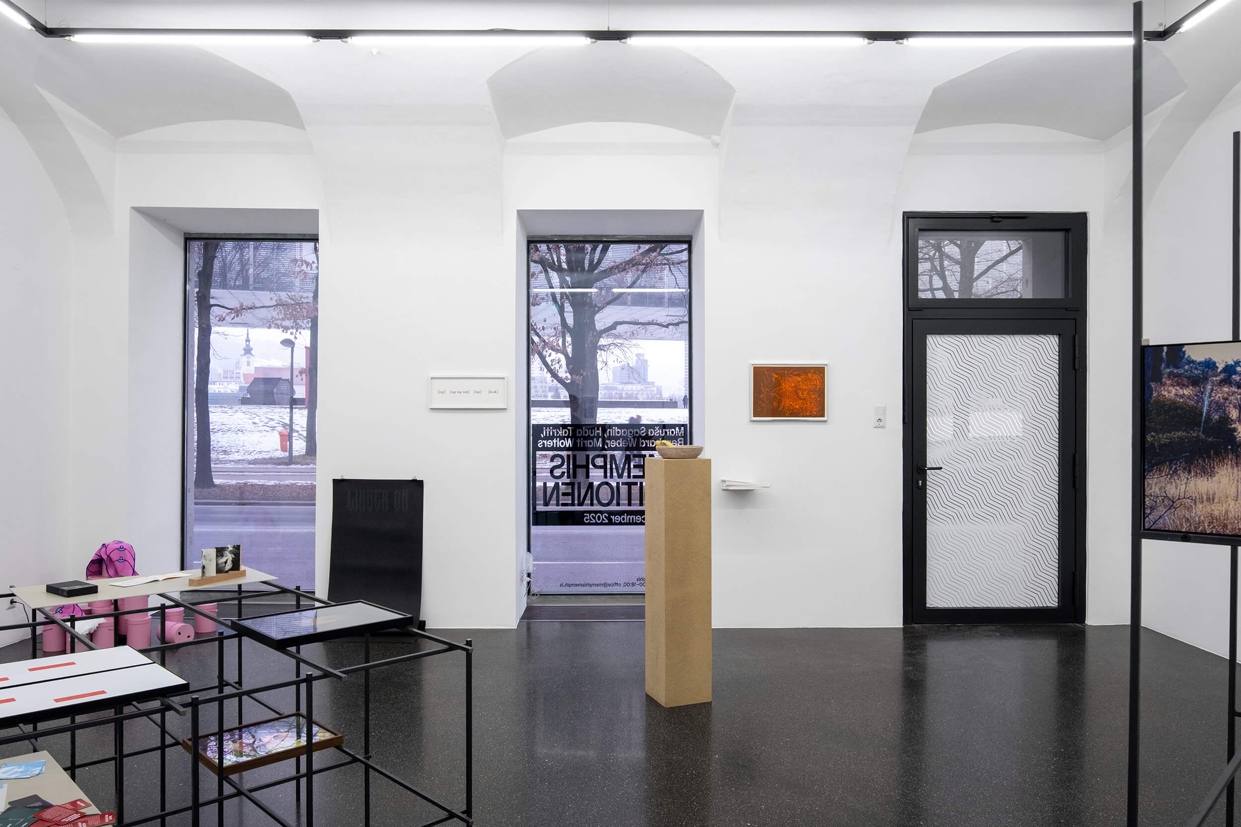 Die diesjährige Auswahl verbindet unterschiedliche Zugänge: Maruša Sagadin arbeitet mit spielerischen Material- und Formverschiebungen und hinterfragt gewohnte Sichtweisen auf alltägliche Strukturen; Huda Takriti verwandelt zufällige Handyaufnahmen in kleine, erinnerungsstarke Bildobjekte; Bernhard Weber entwickelt aus der Beschäftigung mit dem Thema Corporate Scent eine Duftkomposition zur Identität von alternativen Räumen der Kunst; und Marit Wolters übersetzt die räumliche Offenheit eines historischen Grundrisses in eine leichte, gitterartige Aluminiumskulptur. Gemeinsam ist den Arbeiten ein feiner Sinn für die Verschiebung von Wahrnehmung, Raum und Spuren der Erinnerung.