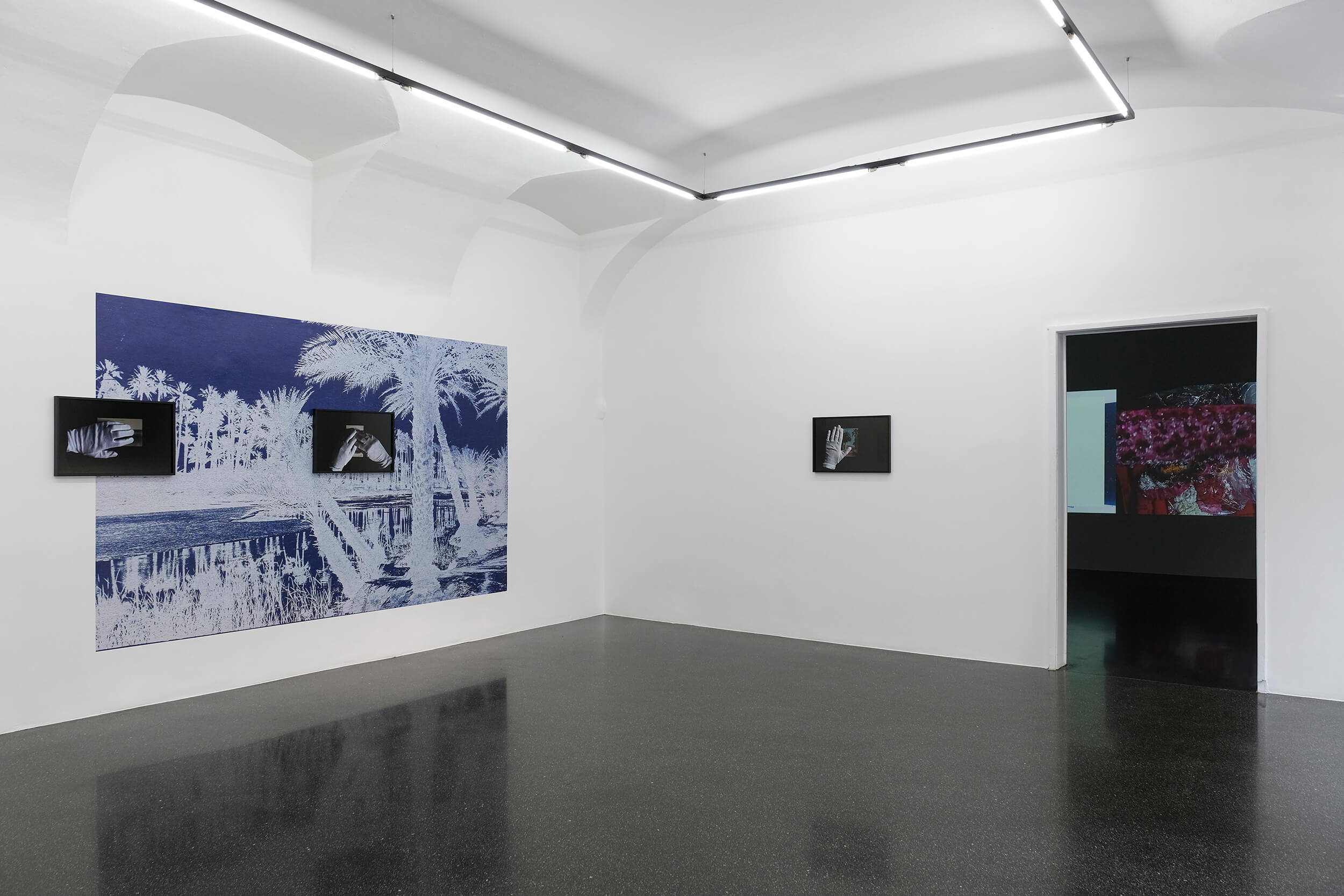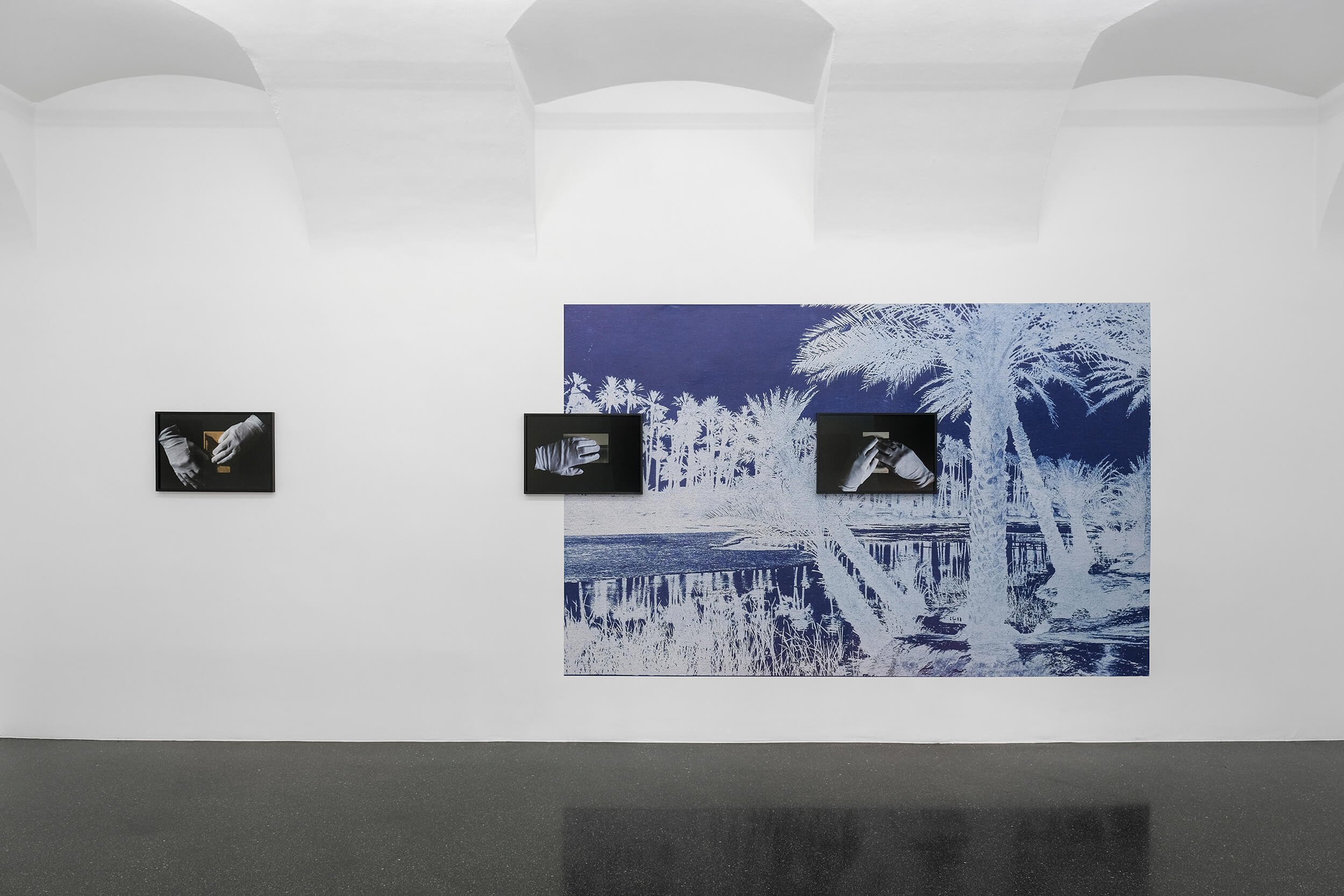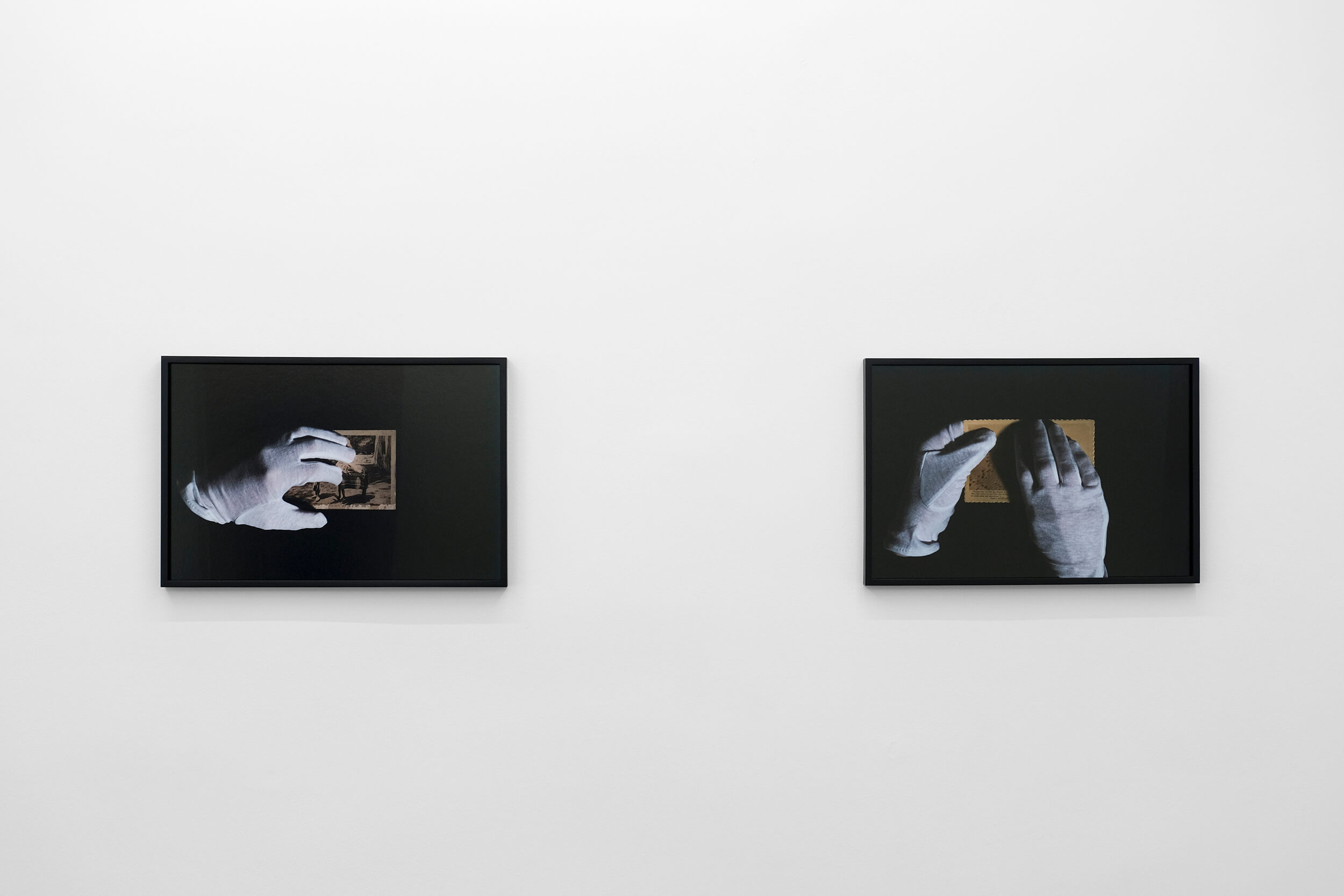Huda Takritis Ausstellung Turning Narratives: In Rehearsal erkundet zwei unterschiedliche, aber miteinander verbundene Werkkomplexe. Im Video On Another Note kehren Takriti und ihre Mutter zu einem Fotoalbum der Familie zurück. Dort begegnen sie Takritis Großmutter, die selbst Künstlerin war. Sich weigernd die Vergangenheit der Familie und die Weltgeschichte, in die sie eingebettet ist, abzuschließen, suchen sich stattdessen nach dem, was sonst noch in den Bildern schimmert; nach bisher ungesagten Teilen der Erzählung. In der Fotoserie Against Nostalgia inszenieren und verdecken zwei behandschuhte Hände Teile von Postkarten aus der französischen Kolonialzeit in Algerien. Sowohl das Video als auch die fotografische Arbeit beinhalten den Akt des Betrachtens und der buchstäblichen Hand habe von Bildern. Bilder werden beispielsweise gedreht und gewendet, ihre Farbenwerden invertiert oder in Schwarz-Weiß übertragen. Es wird nach ihren schwachen Signalen gesucht und nach dem, was außerhalb des Rahmens liegt.